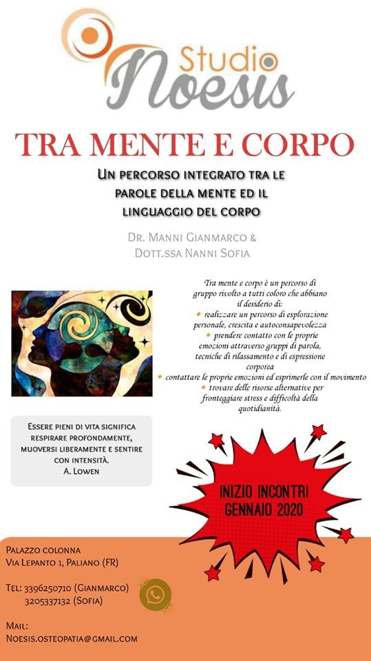 "Tra mente e corpo" è un percorso di gruppo ad approccio integrato finalizzato all'autoesplorazione.